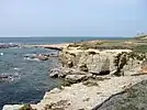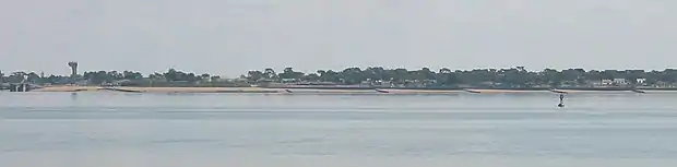 To the south, from La Plaine-sur-Mer to La Bernerie-en-Retz, the coast is wilder and presents a succession of coves and more or less reduced beaches, separated by rocky areas with larger schist cliffs. These then fade into the mudflats, salt marshes and polders of the Marais Breton around Les Moutiers-en-Retz.[1][2]