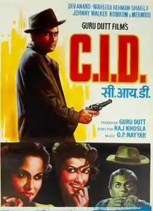 C.I.D. is a 1956 Indian crime thriller film directed by Raj Khosla and produced by Guru Dutt. It stars Dev Anand, Shakila, Johnny Walker, K. N. Singh and Waheeda Rehman. The film has Dev Anand playing a police inspector investigating a murder case. The music was given by O. P. Nayyar and the lyrics by Majrooh Sultanpuri and Jan Nisar Akhtar. It was Waheeda Rehman's screen debut, and future directors Pramod Chakravorty and Bhappi Sonie worked as assistant directors on this film.[1][2] It is considered to be one of the "Best Thrillers to have ever come out of Hindi Cinema".[3]