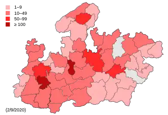 The first four cases of the COVID-19 pandemic in Jabalpur, Madhya Pradesh were confirmed on March 20, 2020.[1] As of August 14, 2021, Madhya Pradesh has confirmed a total of 791,998 cases, and has recorded 10,514 deaths.[2]
