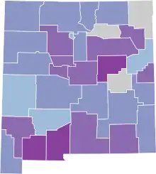![]() Map of the outbreak in New Mexico by confirmed new infections per 100,000 people over 14 days (last updated March 2021)