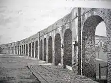 A long span of the Caños de Carmona aqueduct, in a photo of 1890, now demolished, inside Seville.