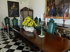 With a total of fifty-six rooms, the Cà d'Zan was meant to impress as a showplace for entertaining.[5] Its first floor consists of principal rooms for entertaining, including a reception room, lounging room, breakfast room, dining room, great hall, and ballroom.