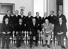 Kozłowski Cabinet with President Mościcki (first row, center). Kozłowski sit on the right from President and Piłsudski on left