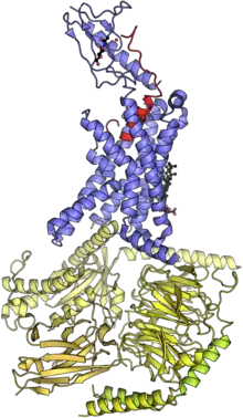 - ↑ Woolley MJ, Simms J, Mobarec JC, Reynolds CA, Poyner DR, Conner AC (October 2017). "Understanding the molecular functions of the second extracellular loop (ECL2) of the calcitonin gene-related peptide (CGRP) receptor using a comprehensive mutagenesis approach" (PDF). Molecular and Cellular Endocrinology. 454: 39–49. doi:10.1016/j.mce.2017.05.034. PMID 28572046. S2CID 13779528.