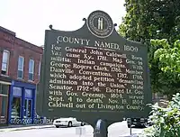 Caldwell County is a county located in the U.S. state of Kentucky. As of the 2020 census, the population was 12,649.[1] Its county seat is Princeton.[2] The county was formed in 1809 from Livingston County, Kentucky and named for John Caldwell, who participated in the George Rogers Clark Indian Campaign of 1786 and was the second lieutenant governor of Kentucky. Caldwell was a prohibition or dry county until 2013, when the citizens voted to lift the ban.