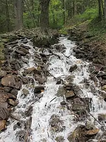 Fishing is a popular recreational activity at Caledonia State Park and the surrounding Michaux State Forest. Three streams, East Branch Conococheague Creek, Rocky Mountain Creek and Carbaugh Run, flow through the park and forest. The streams are home to some warm water fish as well as brown trout, native brook trout, and rainbow trout. The brown and rainbow trout are stocked by the Pennsylvania Fish and Boat Commission.[2]