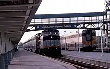 ![]() "California Car" coach/cab car leading the San Joaquin in Fresno, CA | |