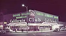 The California Club operated from 1958 to 1973. Phil Long took over operation of the casino located at the corner of First and Fremont Street in Downtown Las Vegas, Nevada, 1958.[1] The locals casino catered to local gamblers. It was owned and operated by Phil Long and George Milford and was a casino only without any hotel rooms. The California Club was sold to Steve Wynn in 1973. The California Club was combined into the Golden Nugget shortly after the purchase by Wynn.