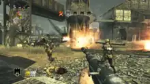 World at War features more mature themes than previous Call of Duty installments and is open-ended, giving the player multiple ways to complete objectives, but otherwise generally plays like previous iterations of the franchise.[4][5][6] Players fight alongside AI-controlled teammates. They help during the game's missions by providing cover fire, shooting down enemies, and clearing rooms for entry.[7] When playing the Wii version of the game, the Wii Remote and Nunchuk is used to aim at enemies with motion controls.[8]