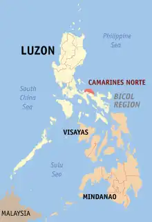 Camarines Norte's 2nd congressional district is one of the two congressional districts of the Philippines in Camarines Norte. It has been represented in the House of Representatives of the Philippines since 2010.[3] Previously included in Camarines Norte's at-large congressional district, it includes the eastern half of the province, bordering Camarines Sur. It is currently represented in the 19th Congress by Rosemarie C. Panotes of the Lakas–CMD.[4][5]