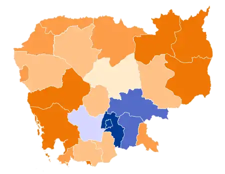 | 17 | Prey Veng | 6 / 11 | 287,778 | 49.95% |