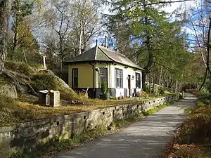 The body of a GNoSR carriage stood close to the station for many years.[4] The siding at the old loading dock was the site of a LNER camping coach from 1935 to 1939 and possibly one for some of 1934 until it was moved to Aboyne after 1948.[4][5] This loading dock had been opened by the Aboyne and Braemar Railway prior to the station in conjunction with the ballast quarry but was also used to handle cattle and timber traffic.