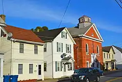 Camden Historic District is a national historic district located at Camden, Kent County, Delaware. It encompasses 65 contributing buildings in the crossroads community of Camden. At least 18 of the contributing buildings date between 1780 and 1820, with the remainder dated to the 19th century. Notable buildings include the Greek Revival style "Spruce Acres", Georgian style Mifflin House, the 1856 Whatcoat Methodist Church, Amity Lodge Building, Gov. George Truitt House, and a number of Italianate style dwellings.[2]