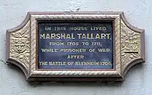 Tallard was placed in overall command of the combined Franco-Bavarian army, but the subsequent Battle of Blenheim on 13 August 1704 resulted in complete destruction of his forces. Decisively beaten, he was captured and taken back to England and housed on parole in Chatsworth, Derbyshire[6] and Newdigate House Nottingham.[1] The writer Daniel Defoe reported that his small, but beautiful parterre, after the French fashion was one of the beauties of Nottingham.[7]