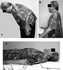 - 1 2 3 4 Azher, Shaheda N.; Jankovic, Joseph (2005-08-09). "Camptocormia: pathogenesis, classification, and response to therapy". Neurology. 65 (3): 355–359. doi:10.1212/01.wnl.0000171857.09079.9f. ISSN 1526-632X. PMID 16087897. S2CID 24603602.