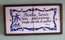 "Canção do exílio" (Portuguese pronunciation: [kɐ̃ˈsɐ̃w dweˈzilju], Exile song) is a poem written by the Brazilian Romantic author Gonçalves Dias in 1843, when he was in Portugal studying Law at the University of Coimbra. The poem is a famous example of the first phase of Brazilian Romanticism, which was characterized by strong nationalism and patriotism.