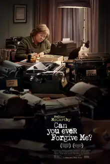 Can You Ever Forgive Me? is a 2018 American biographical film directed by Marielle Heller, with a screenplay by Nicole Holofcener and Jeff Whitty based on the 2008 confessional memoir of the same name by Lee Israel. Melissa McCarthy stars as Israel, and the story follows her attempts to revitalize her failing writing career by forging letters from deceased authors and playwrights. The film also features Richard E. Grant, Dolly Wells, Jane Curtin, Anna Deavere Smith, Stephen Spinella, and Ben Falcone in supporting roles. Israel took the title from an apologetic line in a letter in which she posed as Dorothy Parker.[4]