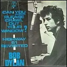 "Can You Please Crawl Out Your Window?" is a folk rock song written by American musician Bob Dylan. In 1965, Columbia Records released it as a single, which reached number 58 on the US Billboard Hot 100 chart,[1] and number 17 on the UK chart in January 1966.[2] While Dylan never included the song on any of his studio albums, it appears on compilations, such as Biograph and Side Tracks.