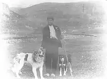 Historic photo showing a Can de Chira (right) and a mastiff (left)