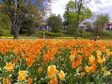 The Canadian Tulip Festival (French: Festival Canadien des Tulipes; Dutch: Canadees Festival van de Tulp) is a tulip festival held annually each May in Ottawa, Ontario, Canada. The festival claims to be the world's largest tulip festival, displaying over one million tulips,[1] with attendance of over 650,000 visitors annually.[2] Large displays of tulips are planted throughout the city, the largest of which are often in Commissioners Park on the shores of Dow's Lake, and along the Rideau Canal with 300,000 tulips planted there alone.[3]