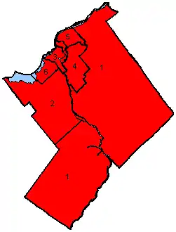 Map of the region's ridings in 1980. Colours show the result from the 1980 election