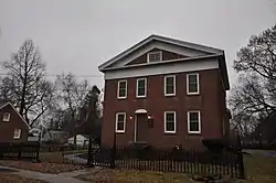 The Captain James Loomis House is located south of the village center of Windsor, on the west side of Windsor Street (Connecticut Route 159), the major north–south route through that part of the town, between Rood Avenue and Woody Brook Road. It is a 2+12-story brick structure, laid in Flemish bond throughout. It is four bays wide and two deep, with a boxed cornice and wide frieze. The main entrance is off-center on the front facade, with a semi-elliptical transom window above. The windows are otherwise symmetrically placed, with cut stone sills and lintels. In the gable end at the attic level is a window exhibiting Gothic tracery. A single-story ell extends the building to the rear.[2]