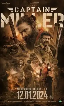 Captain Miller is a 2024 Indian Tamil-language period action adventure film directed by Arun Matheswaran and produced by Sathya Jyothi Films. The film is the first part of a planned trilogy, and stars Dhanush in the title role, with Shiva Rajkumar, Priyanka Arul Mohan, Aditi Balan, Sundeep Kishan, Edward Sonnenblick and John Kokken in supporting roles. Set in the 1930s, during the British Raj, it follows Analeesan "Eesu", a former British Army soldier, trying to save his home city from getting destroyed by the British Army.