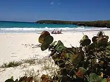 Caracas Beach (Spanish: Playa Caracas), also known as Red Beach in English, is a beach on the southern coast of Vieques in the barrio of Puerto Ferro. The beach is famous for its white sand, its clear blue waters, tidal pools and shallow cove perfect for snorkeling. It used to be considered remote but it is now easily reachable through a paved road. The beach has also been developed for visitors with picnic areas, bathrooms and a large parking area. It is located in and managed by the Vieques National Wildlife Refuge and there is also a trail that leads to a nearby hill that offers beautiful views of the beach and cove.[1][2][3]