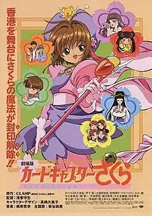 Cardcaptor Sakura: The Movie[lower-alpha 1] is a 1999 Japanese animated fantasy film directed by Morio Asaka and produced by Madhouse and Bandai Visual. The film is based on the anime television series adaptation of Clamp's Cardcaptor Sakura manga series. Written by Nanase Ohkawa, Clamp's head writer, it was released in Japanese theaters on August 21, 1999. It won the Feature Film Award at the 1999 Animation Kobe.[1] Set between the first and second seasons of the television series, the film follows Sakura Kinomoto and her friends as they travel to Hong Kong and encounter a vengeful spirit who was hurt by Clow Reed in the past. A second film, Cardcaptor Sakura Movie 2: The Sealed Card, was released in 2000.
