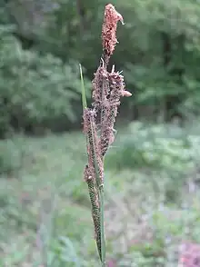 Carex buekii, the banat sedge, is a species of flowering plant in the genus Carex, native to central, southeastern and eastern Europe, the Caucasus region, Anatolia, and the northern Levant.[2][3] It forms large stands in the floodplains of central European rivers.[4]