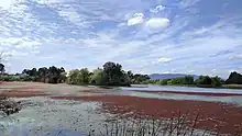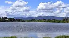 The widest western portion of Caribbean Lake, with Caribbean Market on the left and the Dandenong Ranges in the far background