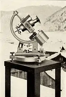 He set up a personal meteorological observatory, which came to be called the Physikalisch-Meteorologisches Observatorium Davos, spending 5000 Swiss francs for it in the first five years. He began to measure ultraviolet radiation which led him to seek cooperation from Carl Zeiss, Jena to develop measuring instrumentation. He developed other instruments including the gray wedge photometer or Davos pyrheliograph in collaboration with Rudolf Thilenius.[2] In 1908 he was able to compare data from Davos with that of Kiel. In 1911 he published a study on radiation in the high mountains. After the death of his daughter in 1912 he decided to continue the research he began. In 1914, he was able to note the effect of the Katmai eruption in 1912 in Alaska and its effect on sunshine in Europe for five months.[3][4] The Swiss government took over his observatory and financed it while also allowing him to continue his research. Dorno published extensively in various journals and was able to hire scientists for research at his observatory.[5][6][7] Dorno received the Leibniz Medal in 1919 and an honorary doctorate from the University of Basel in 1922. In 1924 he examined the effect of climate on birdsong.[8] In 1925, the International Climate Congress was held in Davos under his leadership with a special emphasis on climate and human health.[9][10] In 1926, he retired from the position of director of the observatory and poor vision made him give up work in the 1930s. The observatory was then merged to the Institut für Tuberkuloseforschung and it later became the Schweizerisches Forschungsinstitut für Hochgebirgsklima und Tuberkulose.[11][12]