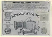 - ↑ Ponti, Carlo (1862). The megalethoscope, invented by Charles Ponti, optician & photographer. : Its object and use. C. Ponti. OCLC 79947651.