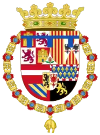 Following the death of his mother, Carlos was raised by his paternal aunts, Maria and Joanna, until their marriages in 1548 and 1552.[6] His childhood was "emotionally deprived": Philip II spent long periods abroad and, after Joanna's departure, Carlos endured a marked lack of affection.[7] According to the courtier Gamiz, Carlos was spoiled and prone to tantrums.[8] At some point, Philip appointed Honorato Juan as the prince's tutor,[9] and later García Álvarez de Toledo y Osorio.[10]