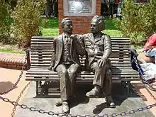 Monument to Albert Einstein discussing with Carlos Vaz Ferreira in 1925. Plaza de los Treinta y Tres Orientales, Cordón, Montevideo, Uruguay.
