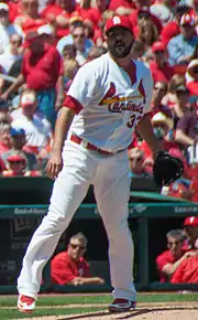 Carlos Manuel Villanueva Paulino (born November 28, 1983) is a Dominican former professional baseball pitcher. He played in Major League Baseball (MLB) for the Milwaukee Brewers, Toronto Blue Jays, Chicago Cubs, St. Louis Cardinals and San Diego Padres. He currently works as Special Assistant to the General Manager/Player Development for the Milwaukee Brewers.[1]