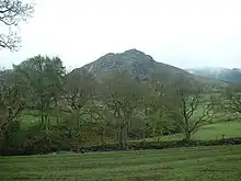 The castle stands on a ridge overlooking the Lliw Valley; its early history is unrecorded, but it is thought to have been built by Prince Llywelyn ap Iorwerth between 1215 and 1230 or Prince Llywelyn ap Gruffudd.[1] Little is known of the site's history although King Edward I of England visited in 1283–84.[2]