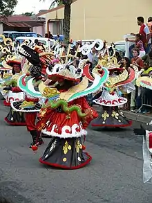The participants – French, Creole, Brazilian and Chinese people[3] – dress in vibrant costumes.[4] Main events include a parade and a burlesque-style marriage.