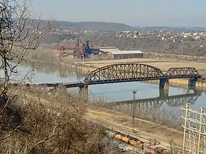 The Carrie Furnace Hot Metal Bridge (also known as the Union Railroad Rankin Hot Metal Bridge #35) is a railroad truss bridge across the Monongahela River between Whitaker, Pennsylvania and Rankin, Pennsylvania. The bridge is out of service and it hasn't seen a train in almost 40 years.