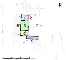 The floorplan and room layout. Ling and Courtney (1981) developed the excavation plan showing the basic layout of the building.