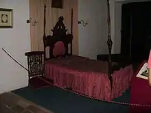 A bed which belonged to Fernando de la Mora is placed here and his portrait can be seen on the wall. Below the picture, there is an embroidered shirt worn by him. A large chest used by Juan Bautista Rivarola, a peculiar toilet, a magnificent prie-dieu and a polychrome niche complete the atmosphere of the room.