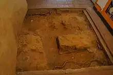 The archaeological research, carried out between 1978 and 1979, led by Marlene Suano, covered strategic points in the house, opening cuts of up to 80 cm in the floor that would serve as guides in the search for architectural evidence that could bring more information about the daily life of those who lived there. The objects ranged from metallic buttons, river shells, coins, glass bottle caps, white crockery, to other fragments such as bones, iron, pieces of charcoal, and charred sticks. In addition, holes were also found in the dirt floor that would correspond to the use of stakes that were probably used as support for hammocks and household utensils. Because of these observations, sections of this environment were purposely left uncovered so that a piece of the rammed earth foundation of an old wall that existed at the site can be seen.[13]