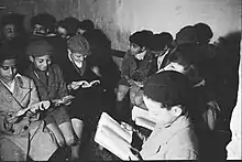 The initiative for the SP creation started in 1941, when population growth in the Casablanca Mellah was raising concerns over poor hygiene and undernutrition conditions.[15][12] Few documents remain of the SP first period; the number of children benefiting from the canteen at this time is unknown. Its goal was to provide hot meals as well as to educate underprivileged young Jewish children between the ages of 6 and 8. The SP received 300 children[16] per year . At the very beginning, only one teacher was hired and only a single class of thirty children was in operation[17][18] There are few press articles, about fifty photographic shots,[19] photos of charity balls in which money collections took place as well as some shots of benefactors. They were wealthy Jewish donors from Casablanca. Armand Tordjman was the first director and Mr. Elbaz was the accountant. Some assistants and cooks were also hired. Merchants of the central food market in Casablanca donated surpluses and sold food at reduced prices. The Civil Region (of Casablanca) provided coupons for fabrics, which were cut free of charge by Jewish tailoring companies and volunteers distributed the clothes. Millers provided flour at low cost, with which a baker made bread for free.[17][18] In 1941, when the SP was established, Jewish structures capable of integrating the children of the Mellah were not equipped to meet the needs. These structures: the JOINT, ORT, Alliance Israélite Universelle, OSE, and others were more active in the following years. After Morocco's independence in 1956, the Jewish population of the Mellah gradually left the ghetto, which became depopulated.