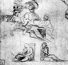A copy in Frankfurt (in poor condition and probably transferred from canvas to panel) and a preparatory sketch are the only evidence of the work. The sketch is on the back of a sheet of designs for a fresco at the San Giovanni Evangelista church in Parma, dating the Casalmaggiore Madonna commission to November 1522.
