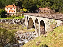 On 24 November 2016 an exceptionally violent storm hit central Corsica and caused widespread flooding. An ice jam on the Casaluna river washed away a centuries-old bridge that spanned it.[4] The bridge carried the D39 road over the lower Casaluna about 3 kilometres (1.9 mi) above its mouth.[5] A temporary bridge was thrown over the river in mid-January 2017, but could not carry the heaviest vehicles. In May 2020 work on a permanent replacement was scheduled to begin. Although some of the local people wanted the old bridge to be rebuilt, that would be vulnerable to a similar storm, which was expected to become increasingly common as the climate changed. Instead a modern bridge was to be built in place of the old one.[4] On 23 July 2020 a public inquiry was launched prior to environmental authorization of the project.[6]
