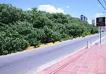 The Cashew Tree of Pirangi (Cajueiro de Pirangi), also called the world's largest cashew tree (maior cajueiro do mundo), is a cashew tree in Pirangi do Norte, Rio Grande do Norte, Brazil.[1] In 1994, the tree entered the Guinness Book of Records.[1] It covers an area between 7,300 square metres (1.8 acres)[2] and 8,400 square metres (2.1 acres).[3] Having the size of 70 normally sized cashew trees,[3][4] it has a circumference of 500 m (1,600 ft).[4] The vicinity of the World's Largest Cashew Tree in North Pirangi is also a main place for the sale of lace and embroidery in Rio Grande do Norte state.[5]