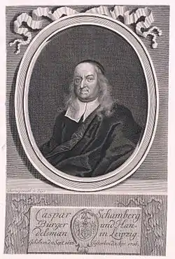 Caspar Schamberger (1 September 1623 in Leipzig, Germany – 8 April 1706) was a German surgeon. His name represents the first school of Western medicine in Japan and the beginning of rangaku, or Dutch studies.