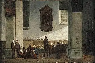 There, he became known for painting church interiors. In his later years, he also became an art dealer and did restorative work. A large collection of his silhouettes may be seen at the Rijksprentenkabinet.