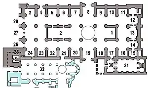Plan of the New cathedral of Salamanca (missing references are indicated in each section of the article):