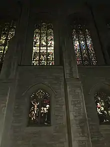 The stained glass was created by Charles Connick's studio.